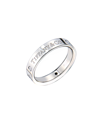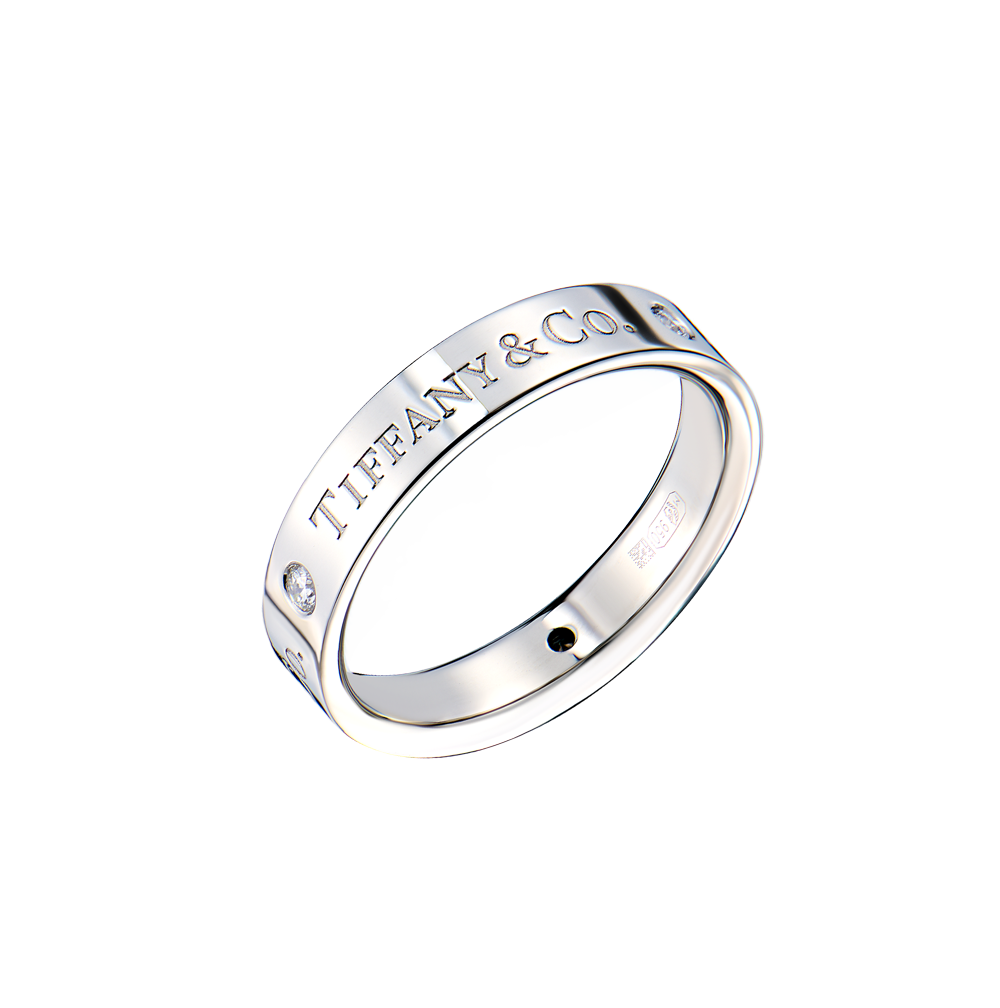 Обручальное кольцо Tiffany & Co выполненное из платины 950 пробы с 3 бриллиантами классической формы огранки массой 0,08 ct. Ширина 4 мм. Размер кольца - 17,0 (54). Вес - 6,71 гр.
