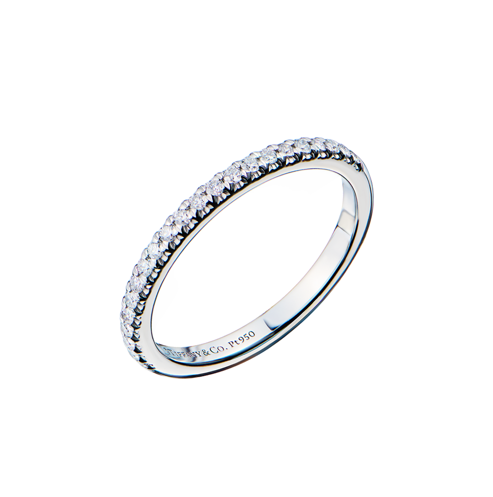 Кольцо Tiffany & Co коллекции "Soleste®" выполненное из платины 950 пробы с 22 бриллиантами классической формы огранки общей массой 0,17 ct. Ширина 2 мм. Размер - 16,75 (53). Вес - 3,20 гр.