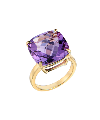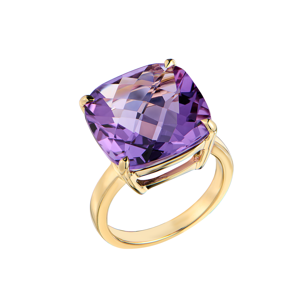 Кольцо Tiffany & Co выполненное из желтого золота 750 пробы с аметистом формы огранки "Кушон" массой 11,5 ct. Размер кольца - 15,75 (49). Вес - 6,62 гр. Размер кольца можем изменить по Вашему желанию.
