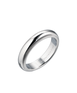 Кольцо Tiffany & Co коллекции "Together" выполненное из платины 950 пробы с фактурными краями в стиле милгрейн. Ширина 3 мм. Размер кольца - 15,25 (48). Вес - 4,96 гр.