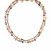 Колье Bvlgari коллекции "Allegra" выполненное из желтого золота 750 пробы с круглым жемчугом 7 мм, турмалинами, топазами, перидотами, зелеными турмалинами, круглые бриллианты массой 4,05 ct., а также иолитом. Длина колье - 40 см. Вес - 79,3 гр.