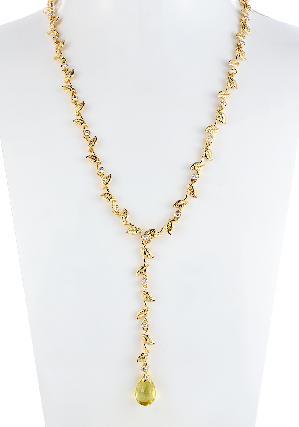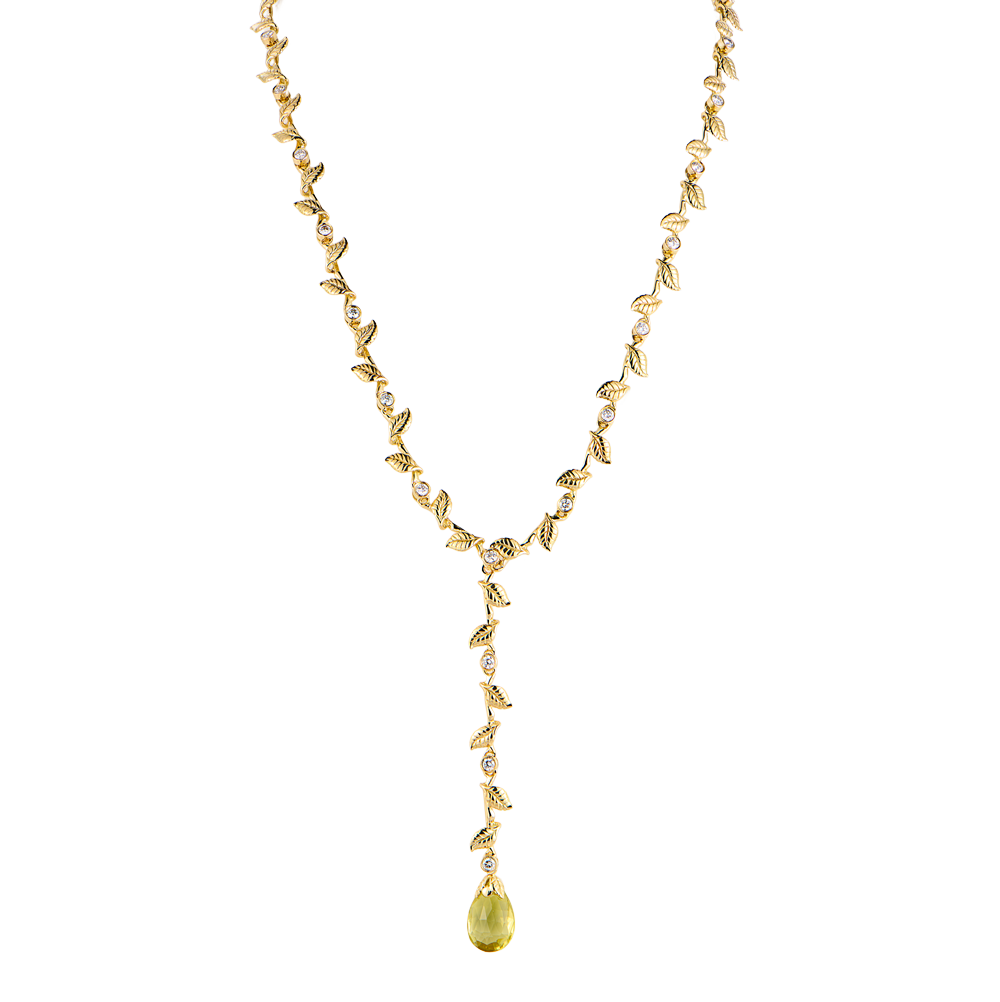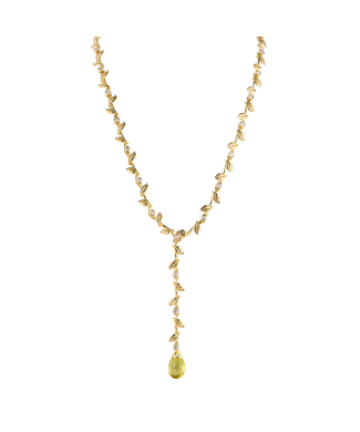 Колье Carrera y Carrera выполненное из желтого золота 750 пробы с 26 бриллиантами классической формы огранки общей массой 1,5 ct. и цитрином формы огранки "Бриолет". Длина колье 43 см. Длина кулона 7 см. (съемная). Вес - 24,03 гр.