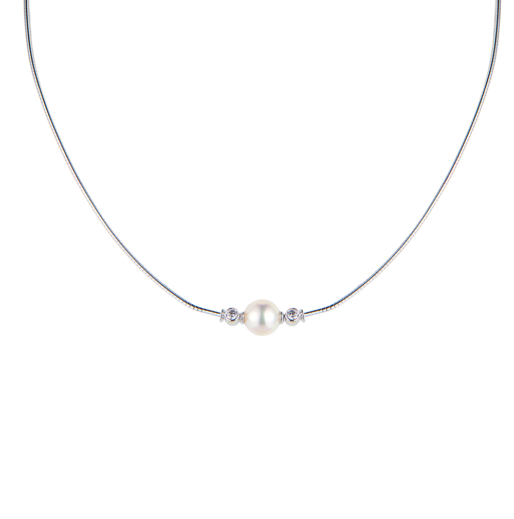 Колье Mikimoto выполнено из белого золота 750 пробы, 1 жемчужина Akoya 8.2 мм., 2 бриллианта классической круглой формы огранки 0.1а0 карат G/VS. Длина цепи 40 см. Вес - 8,58 гр.