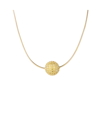 Подвеска выполненная из желтого золота 585 пробы в форме шара с желтыми сапфирами классической формы огранки общей массой 6,00 ct. Длина цепочки - 40 см. Диаметр подвески - 14,9 мм. Вес изделия - 16,48 гр.