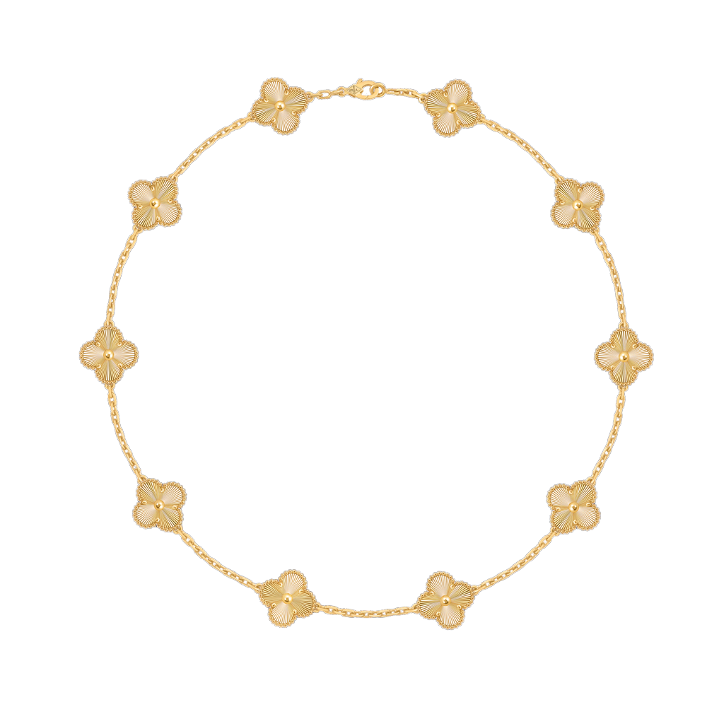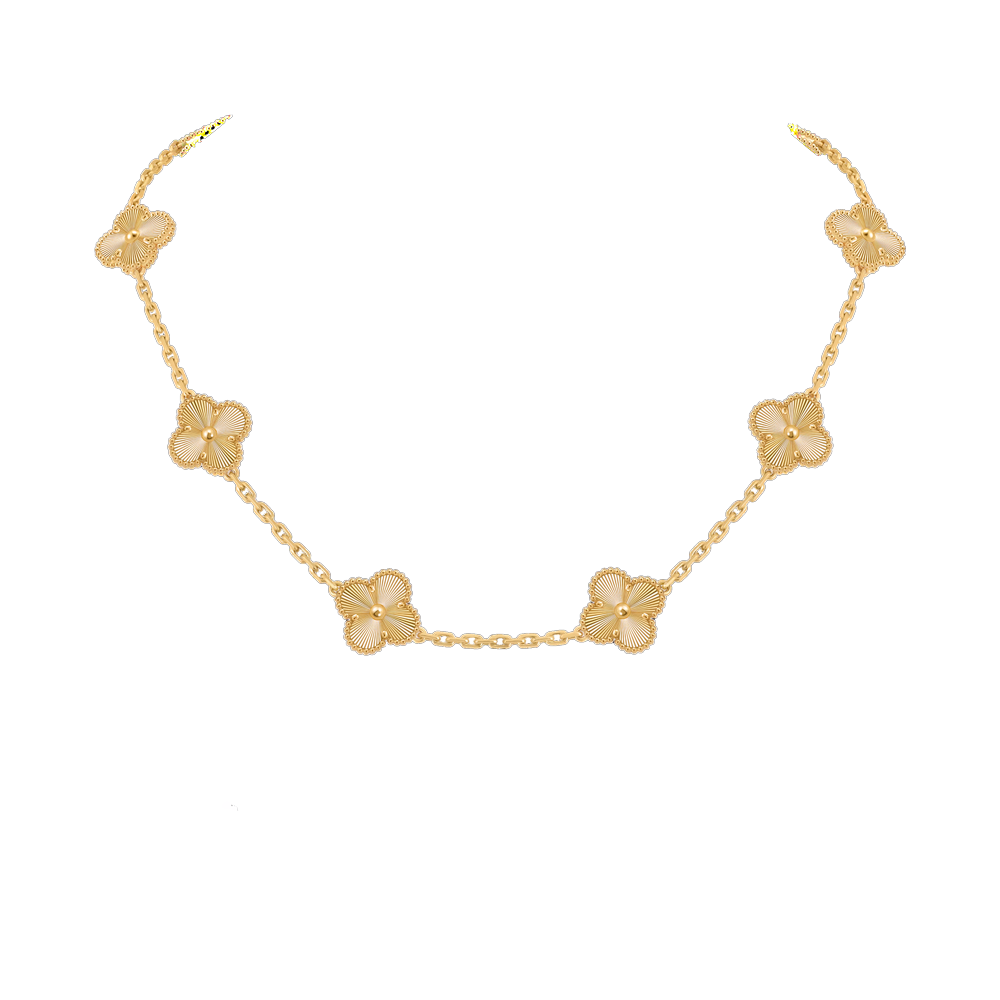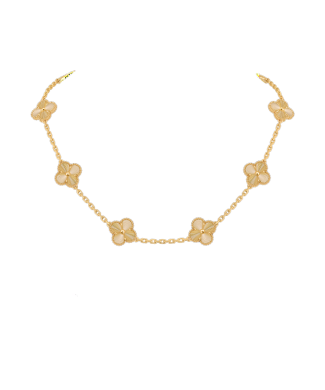 Колье Van Cleef & Arpels коллекции "Vintage Alhambra" выполненное из желтого золота 750 пробы. 10 мотивов. Длина колье - 42 см. Вес - 39,17 гр. Полный комплект.