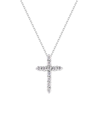 RalfDiamonds крестик, выполненный из белого золота 750 пробы с 11 бриллиантами классической формы огранки "Кр-57" общей массой 0,50 ct. Цвета 4 (G-I). Чистоты 4-5 (VS-SI). Размеры крестика 20 х 14 мм. Длина цепочки - 44 см. Вес - 3,28 гр. Полный комплект.