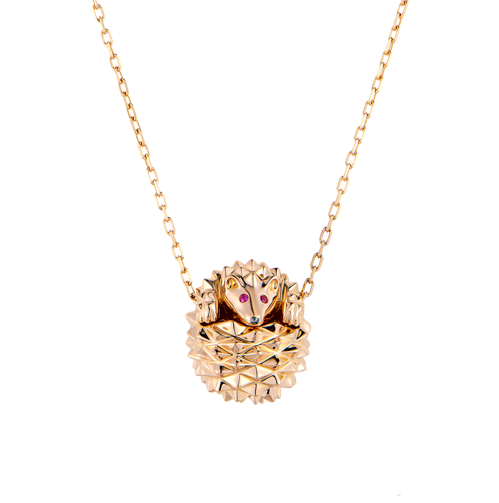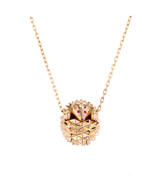 Подвеска Boucheron коллекции "Animaux de Collection" (Ёж) выполнена из розового золота 750 пробы. 2 рубина 0,02 карата. 1 черный бриллиант 0,01 карата. Вес 14,21 грамм. Длина цепи 40 см. Полный комплект.