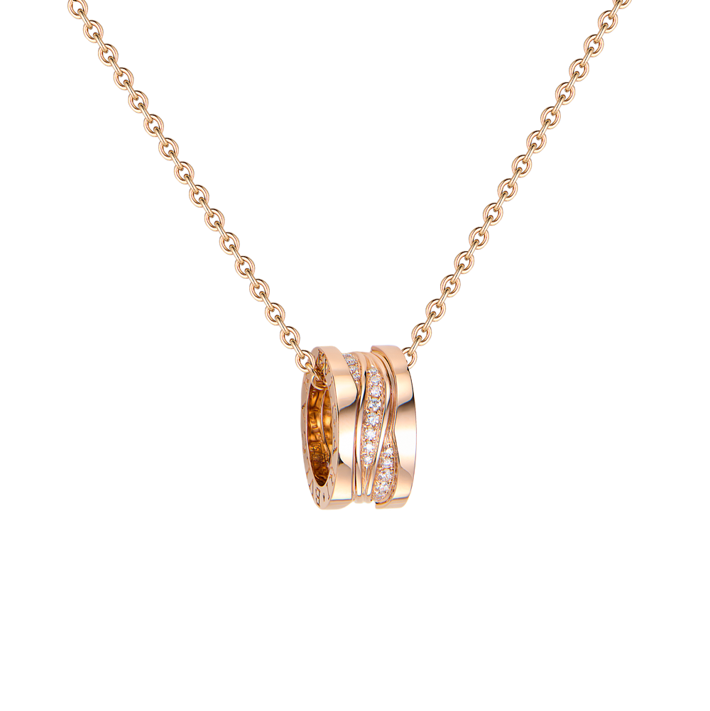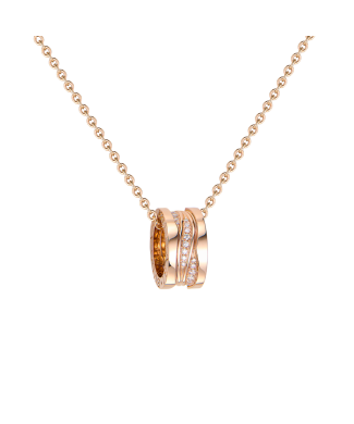 Колье Bvlgari коллекции "B.zero1" редкой серии Design Legend выполненное из розового золота 750 пробы с паве из 34 бриллиантов общей массой 0,19 се. Диаметр подвески - 15 мм. Длина цепочки - 44 см. Вес - 12,35 гр. Полный комплект.