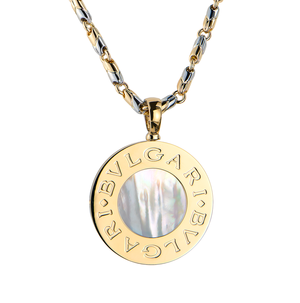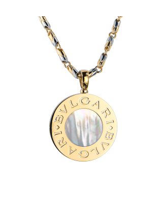 Подвеска Bvlgari коллекции "Tondo" выполненная из стали и желтого золота 750 пробы на цепочке, выполненной из стали и желтого золота 750 пробы длиной 38 см. Диаметр подвески - 35 мм. Вес изделия - 43,33 гр.