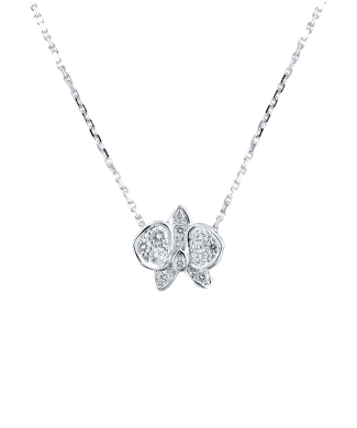 Подвеска Cartier коллекции "Caresse d'Orchidées par Cartier" модель "мини", выполненная из белого золота 750 пробы с 11 бриллиантами классической огранки общим весом 0,13 ct. Длина цепочки - 41 см. Вес - 2,83 гр.