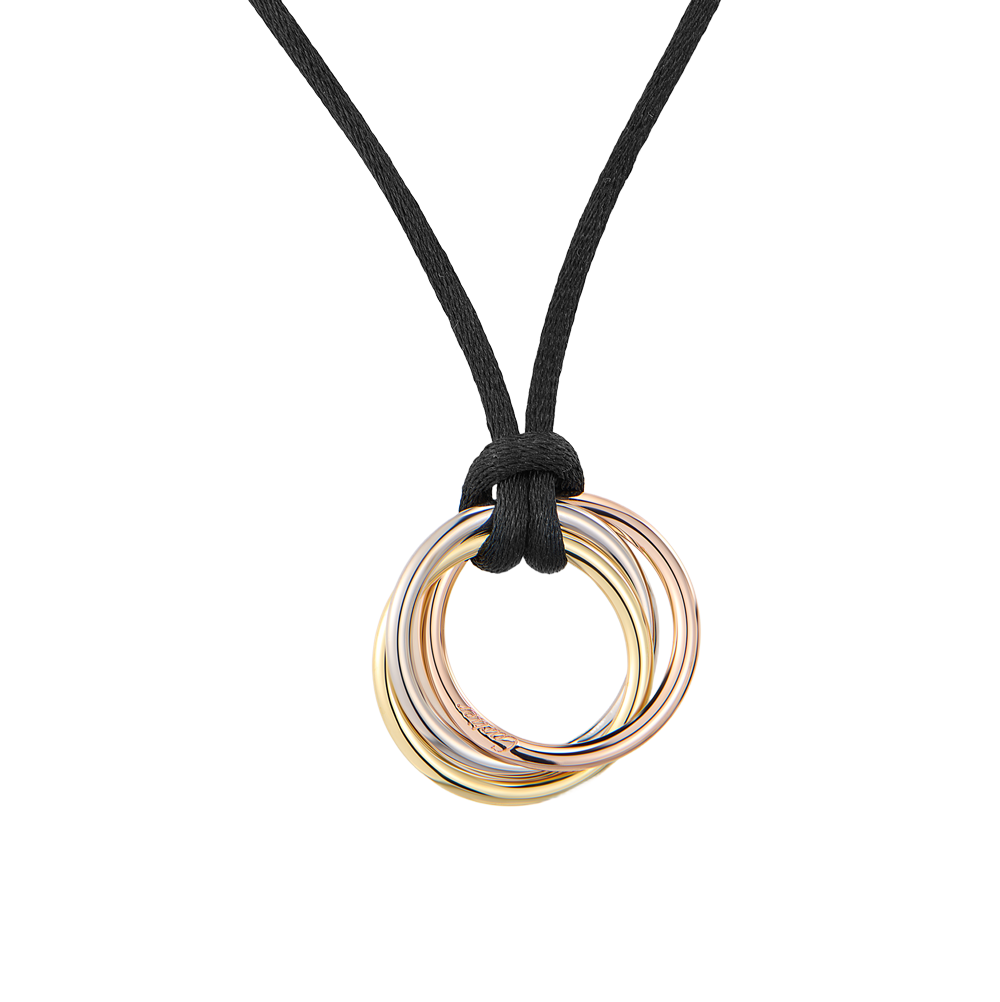 Подвеска Cartier коллекции "Trinity" выполненный из белого, желтого и розового золота 750 пробы. Внутренний диаметр: 19,4 мм. Длина шнурка 64см (регулируется). Вес 12,83 гр.