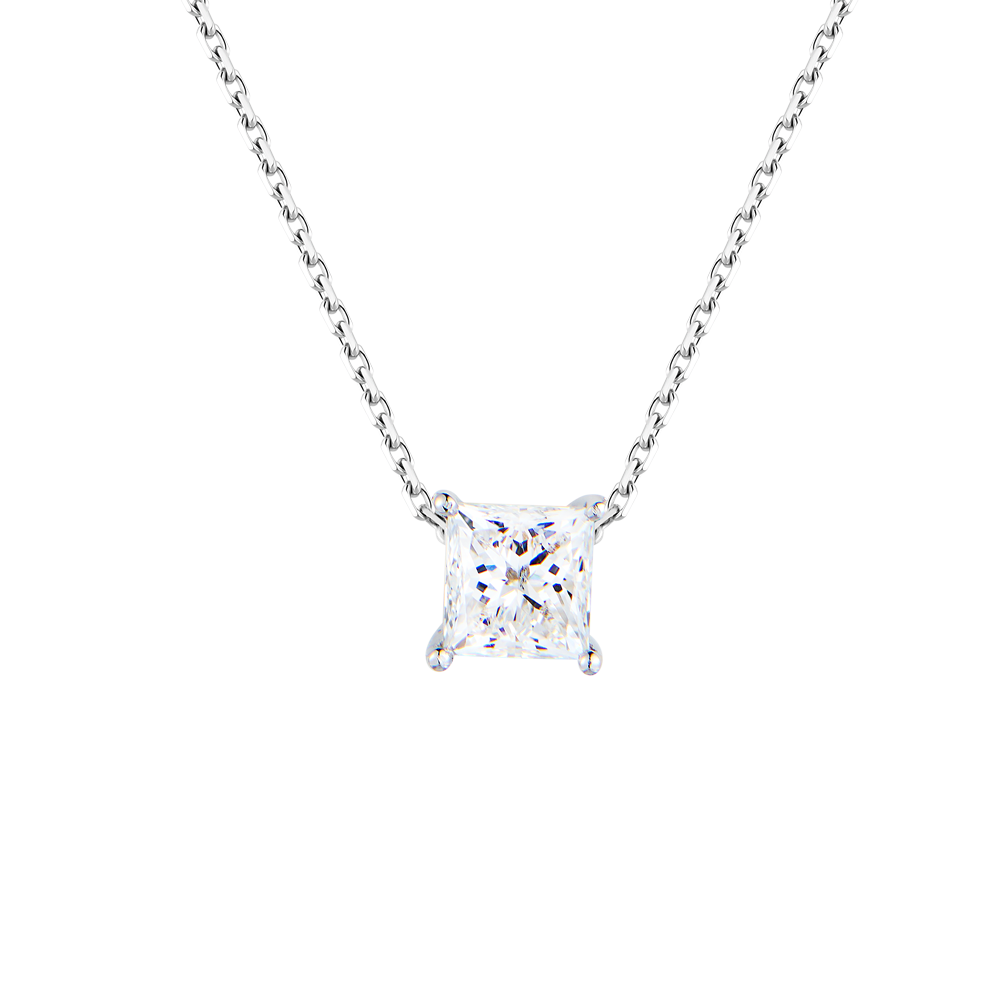 Подвеска выполненная из белого золота 750 пробы с бриллиантом формы огранки "Принцесса" массой 1,04 ct. Цвет - E. Чистота - SI2. Длина цепочки - 42 см. Вес - 2,33 гр. В комплекте прилагается сертификат GIA.
