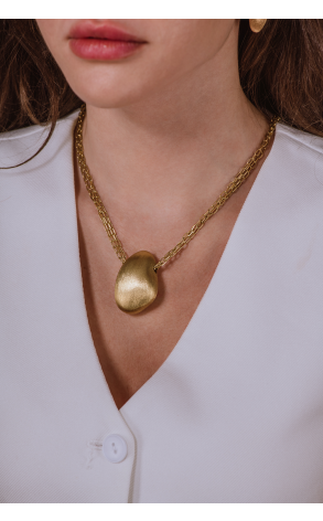 Подвеска H. Stern коллекции "Golden Stone" с камнем из матового текстурированного желтого золота 750 пробы. Размер подвески 4,4 х 2,8 см. Длина тройной цепочки - 80 см. Вес - 58,61 гр.