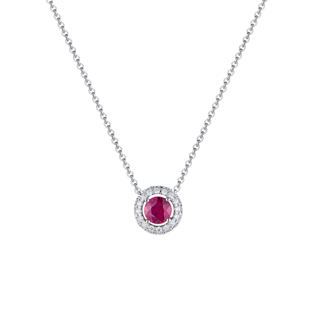 Подвеска (Кулон) Mercury коллекции "Color" выполненный из белого золота 750 пробы с рубином и бриллиантами классической формы огранки. Природный рубин формы огранки "Круг" массой 0,54 ct.. 31 природный бриллиант классической формы огранки общей массой 0,26 ct. Длина цепочки - 42 см (регулируется). Вес - 4,09 гр. Полный комплект.