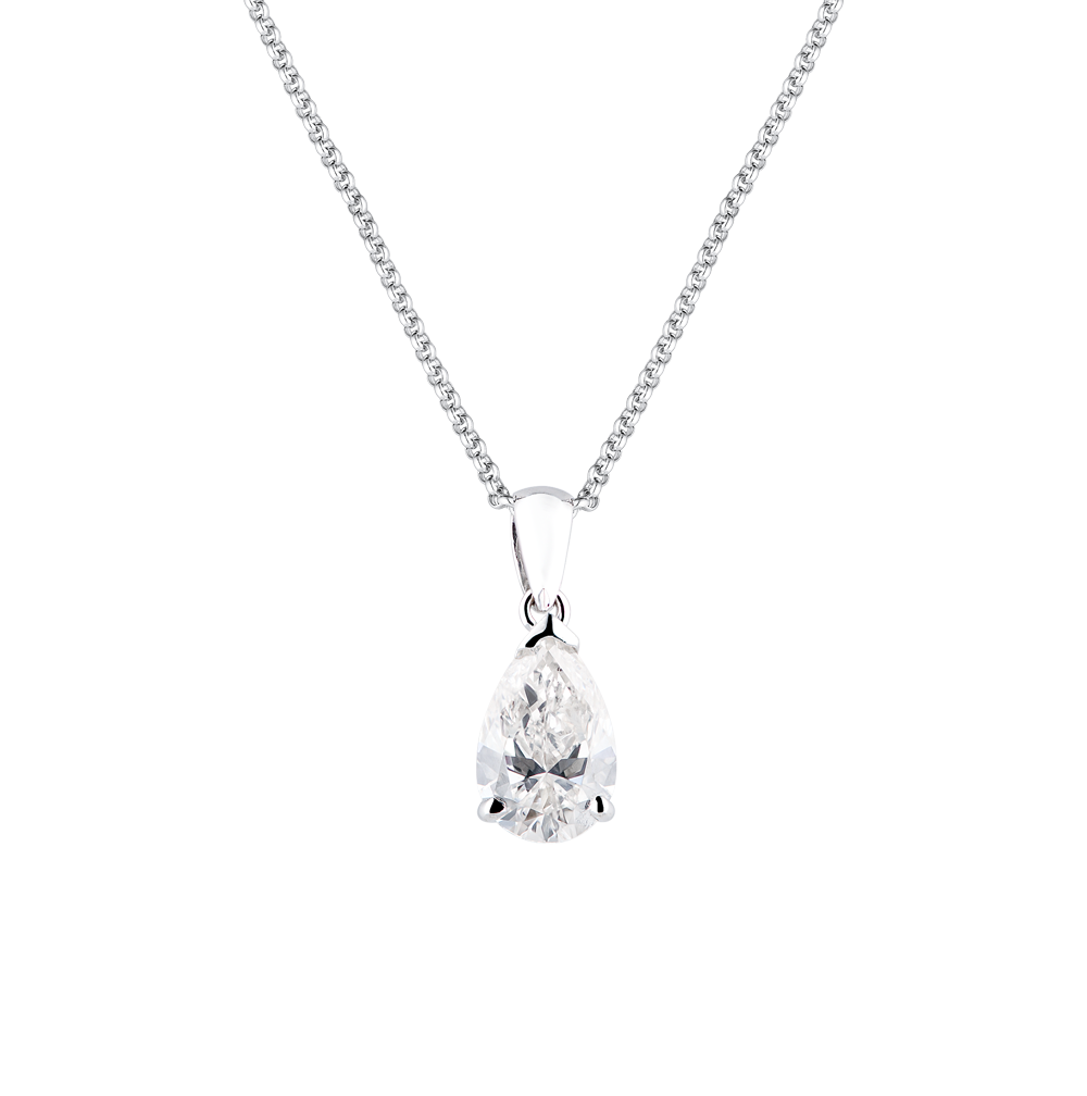 Подвеска на цепочке из белого золота 750 пробы с бриллиантом формы огранки "Груша" массой 1,62 ct. Цвет - I. Чистота - I1. Длина цепочки - 40 см. Вес изделия - 3.01 гр. В комплекте прилагается экспертное заключение геммологического центра МГУ.