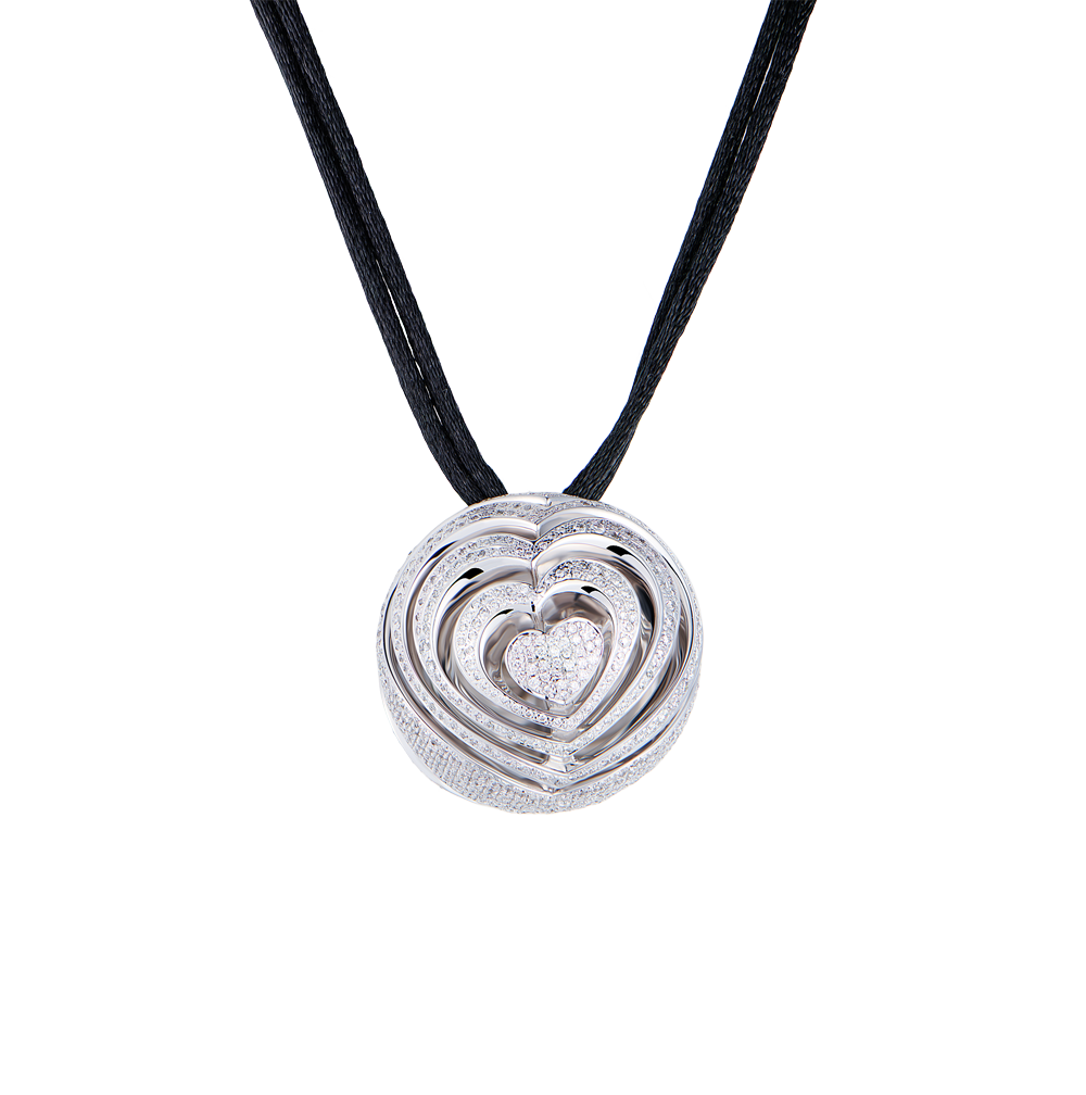 Золотая подвеска выполненная в стиле Chopard Xtravaganza с россыпью бриллиантов классической круглой формы огранки общей массой более 2,50 ct. Диаметр шара - 30 мм. Вес - 38,40 гр. Шнурок сатиновый длина регулируется до 60 см.