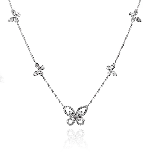 Подвеска В СТИЛЕ GRAFF коллекции "Butterfly выполненная из белого золота 750 пробы с бриллиантами. 68 бриллиантов классической формы огранки общей массой 0,771 ct Длина цепочки - 42 см. Вес изделия - 5,62 гр.