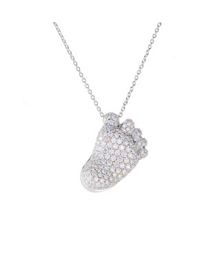 Подвеска (кулон) Pasquale Bruni коллекции "Orme" выполненная из белого золота 750 пробы, инкрустирована бриллиантами классической формы огранки общей массой 1,72 ct. Размер кулона 21 х 13 мм. Длина цепочки - 62 см (регулируется). Вес - 9,09 гр.