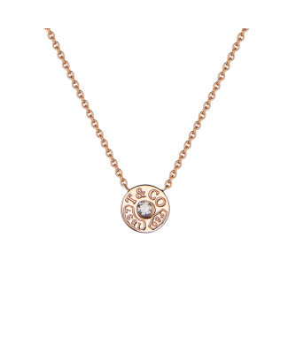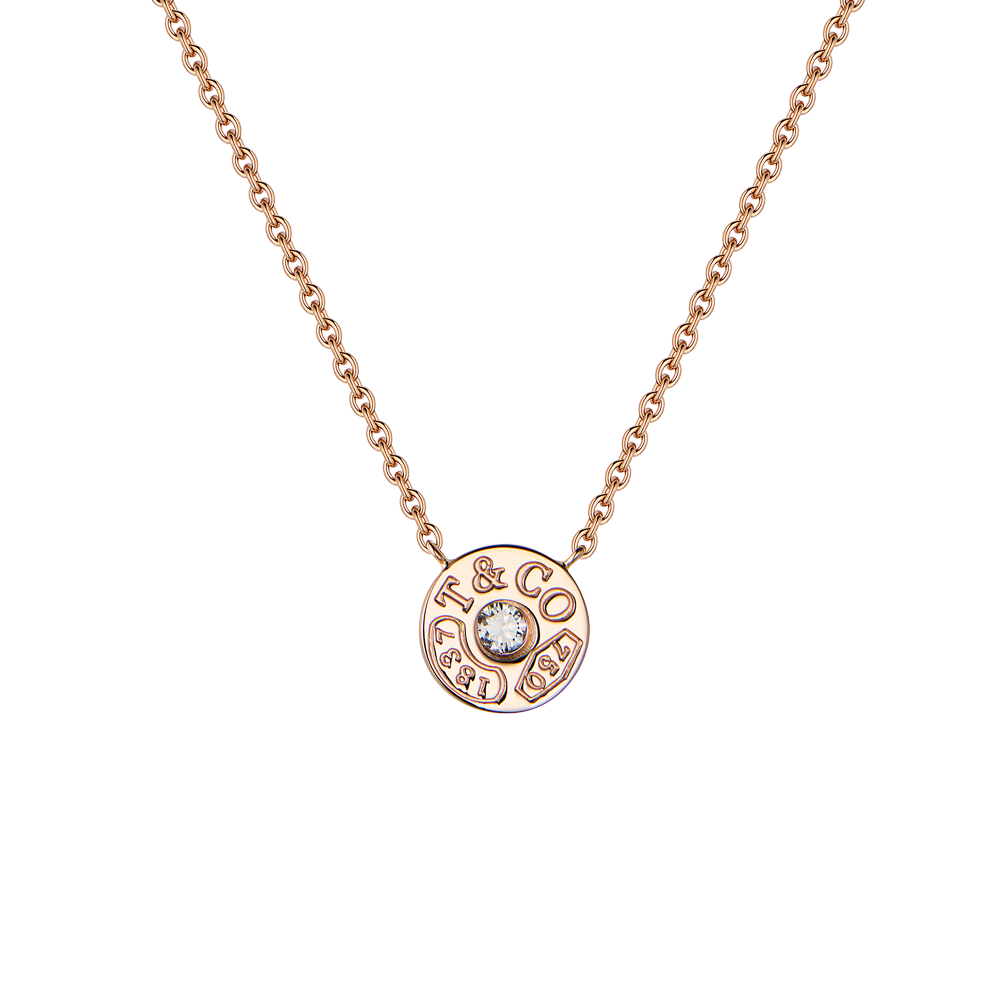 Подвеска Tiffany & Co коллекции "1837®" выполненная из розового золота 750 пробы с бриллиантом классической формы огранки массой 0,05 сt. Длина цепочки 38 см. Вес - 2,59 гр.