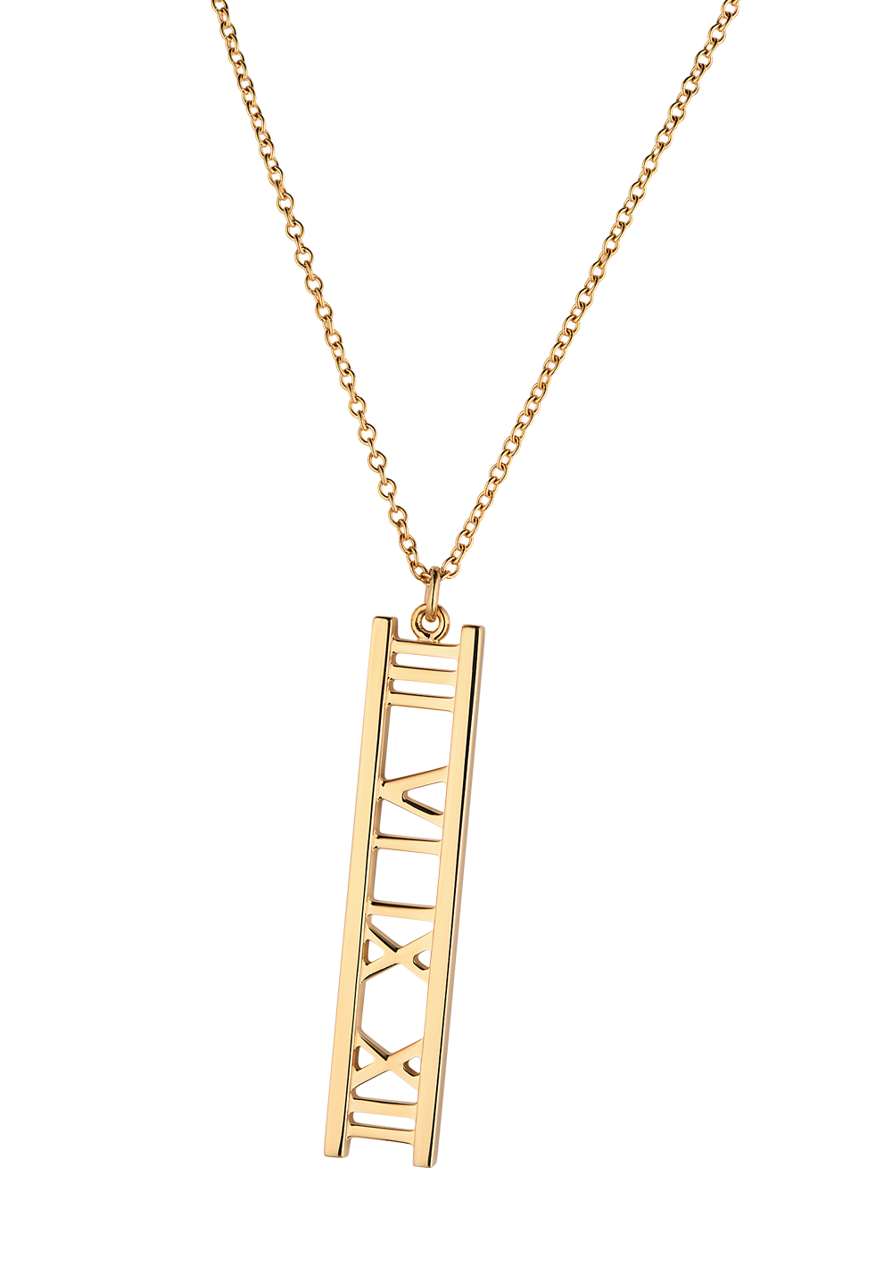 Подвеска Tiffany & Co коллекции "Atlas" выполненная из желтого золота 750 пробы. Размер подвески 30 х 6 мм. Длина цепочки - 40 см. Вес - 3,87 гр.
