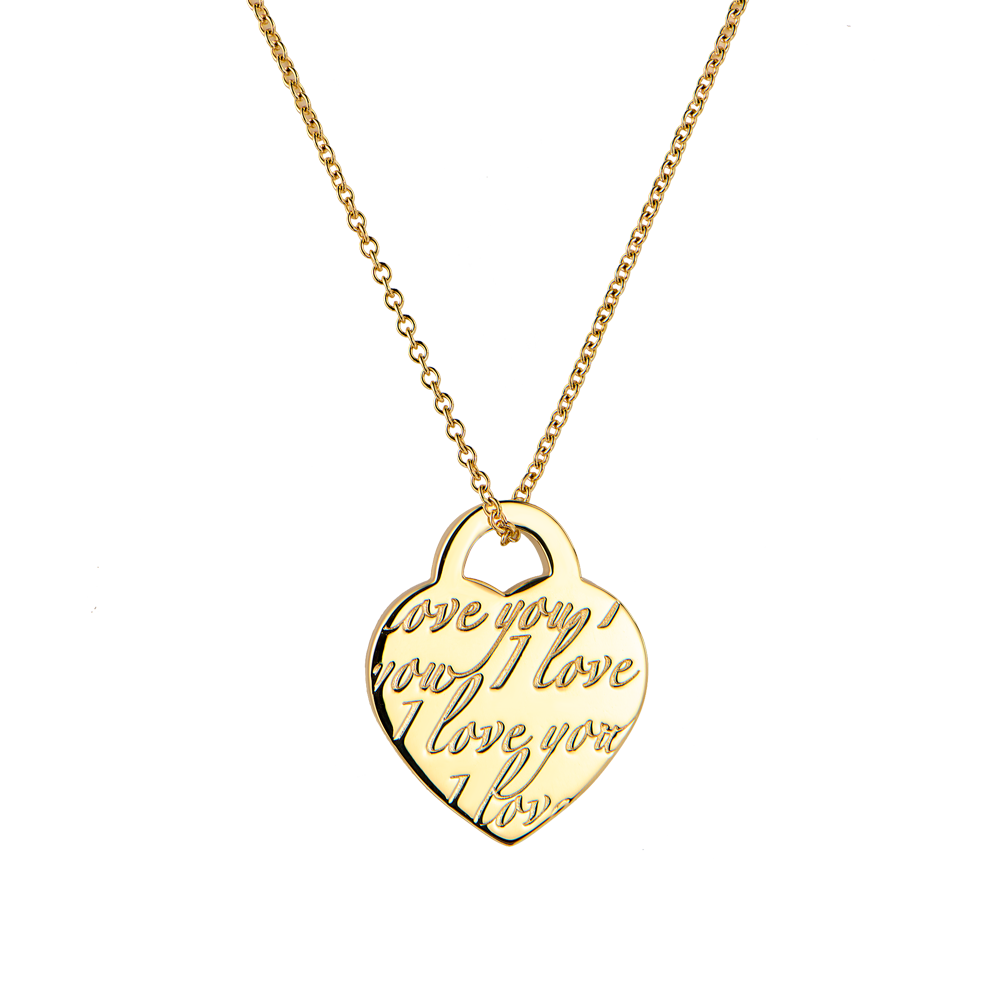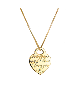 Винтажная подвеска Tiffany & Co коллекции "I LOVE YOU" выполненная из желтого золота 750 пробы. Размер кулона - 16 х 20 мм. Длина цепочки 40 см. Вес - 5,06 гр.