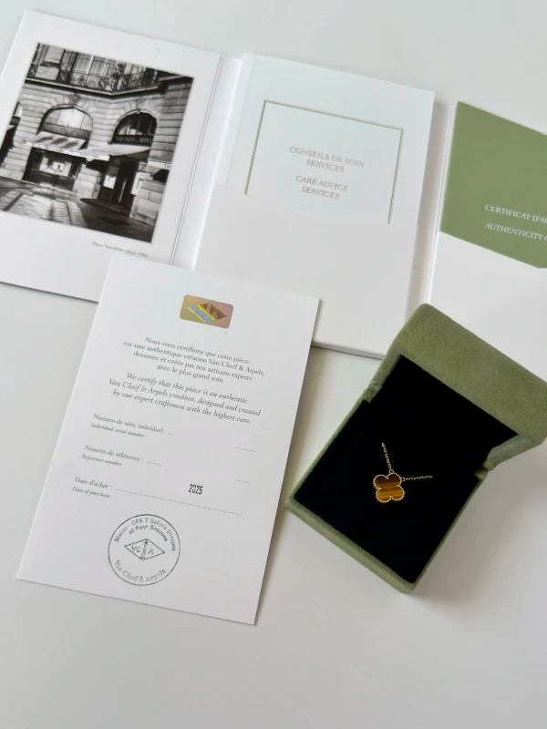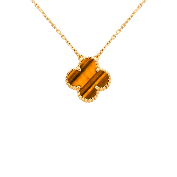 Подвеска - кулон Van Cleef & Arpels коллекции "Vintage Alhambra" из желтого золота 750 пробы с вставкой из тигрового глаза. Длина цепочки 42 см. Размер 14,7 мм. Вес - 5,12 гр. Абсолютно новая, полный комплект.