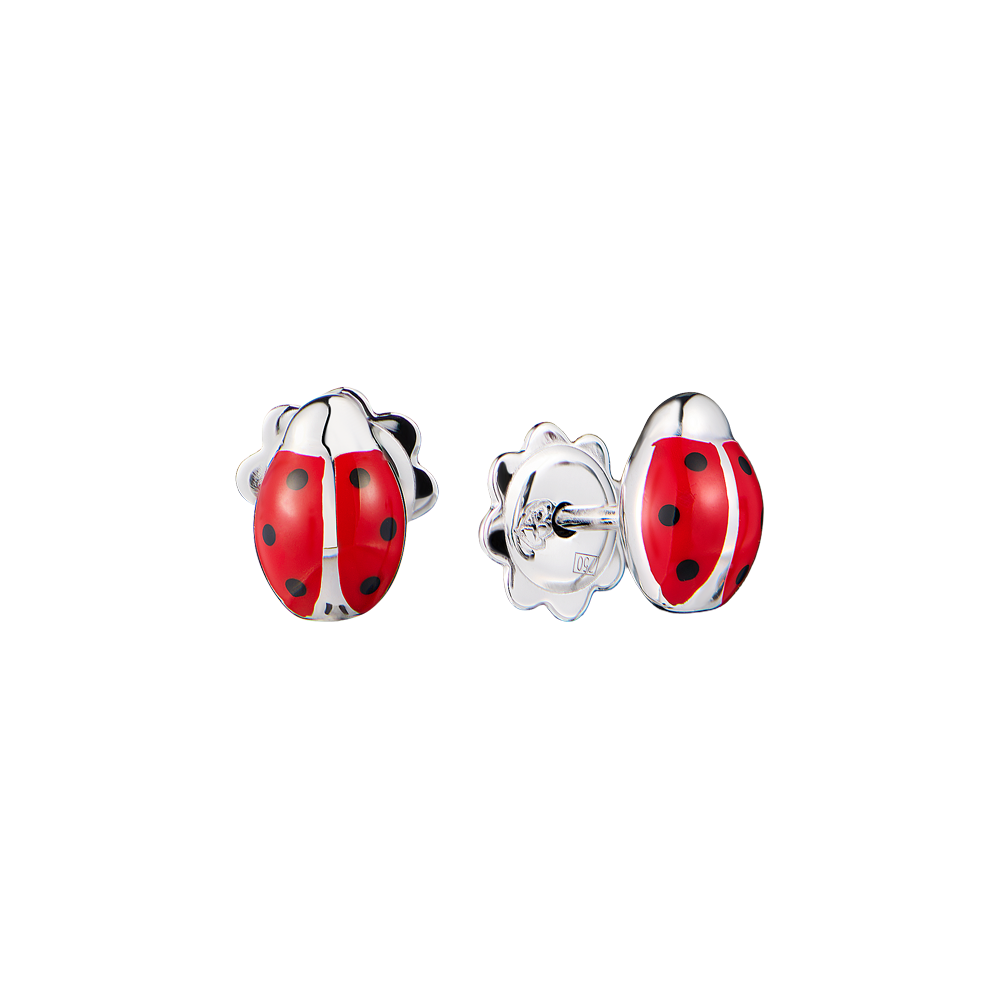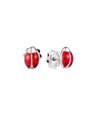 Серьги - пусеты Aaron Basha коллекции "Ladybug" выполненные из белого золота 750 пробы покрытые красной и черной эмалью. Размер 8 х 5,5 мм. Вес изделия - 3,82 гр.