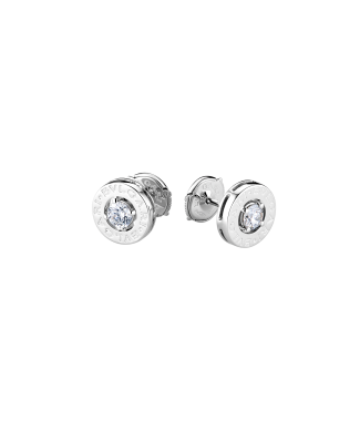 Серьги - пусеты Bvlgari коллекции "Bvlgari-Bvlgari" выполненные из белого золота 750 пробы с 2 бриллиантами классической формы огранки общей массой 0,48 ct. G/VS1. Диаметр сережек - 9,50 мм. Вес - 5,07 гр.