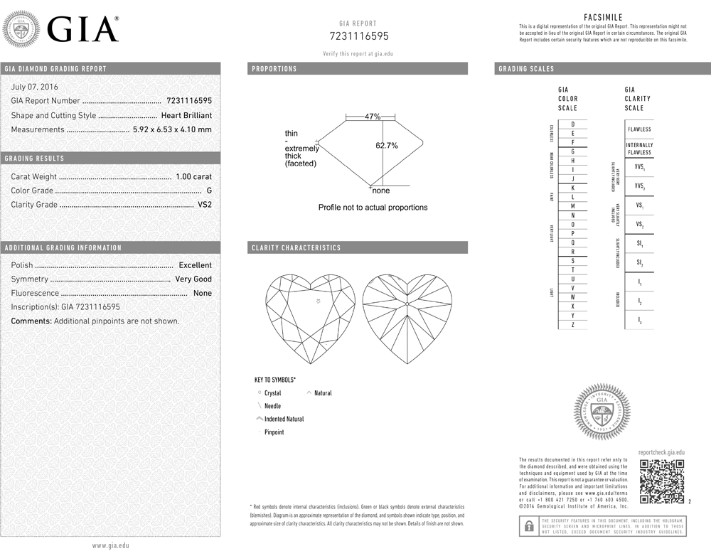 Пусеты, выполненные из белого золота 750 пробы с бриллиантами. 1 бриллиант - 1.00 ct. Форма огранки "Сердце". Цвет - G. Чистота - VS2. 2 бриллиант 1.00 ct. Форма огранки "Сердце". Цвет - G. Чистота - VS2. Общий вес - 2.32 гр. В комплекте прилагаются сертификаты GIA (7231116595/2176471519).