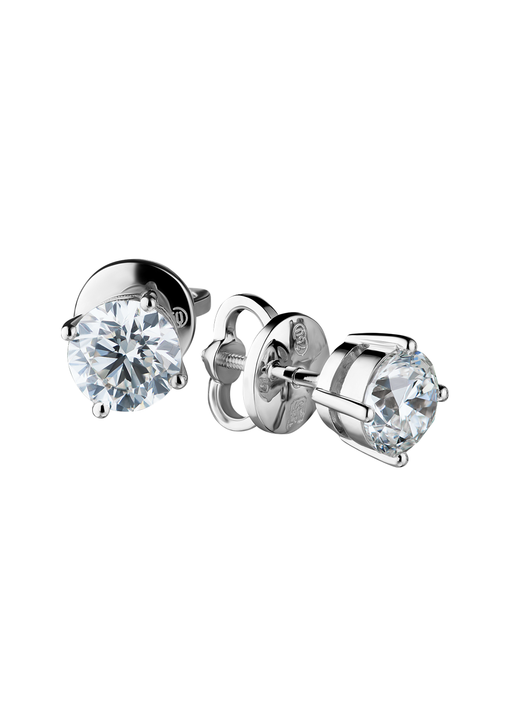 Пусеты, выполненные из белого золота 750 пробы с бриллиантами. 1 бриллиант - 1,05 ct. Форма огранки "Кр - 57". Цвет - H. Чистота - VS2. 2 бриллиант 1,03 ct. Форма огранки "Кр - 57". Цвет - H. Чистота - VS1. Без флюрисценции. Общий вес - 4,11 гр. В комплекте прилагаются сертификаты GIA.