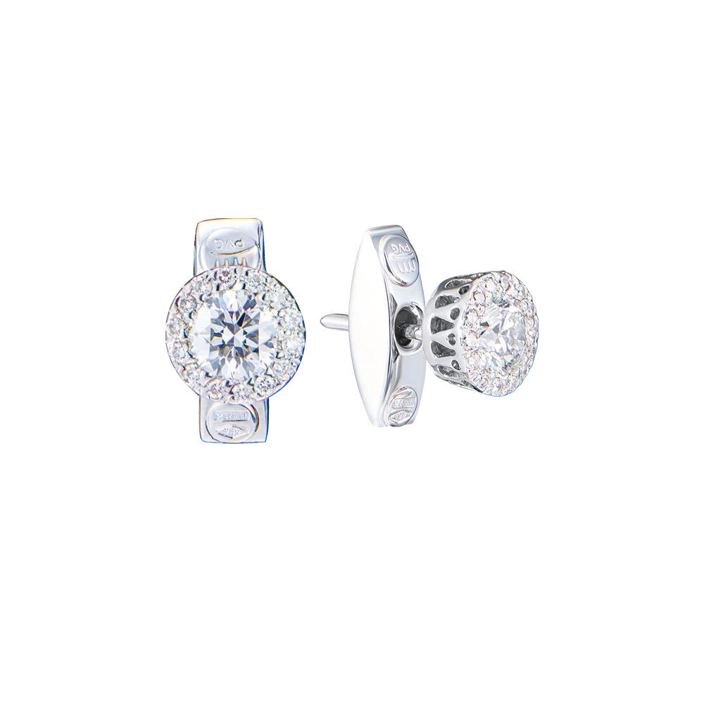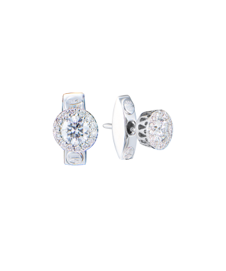 Серьги - пусеты, выполненные из белого золота 750 пробы. 1 бриллиант 0,40 ct. Цвет G. Чистота VVS2. Форма огранки "КР-57". 2 бриллиант 0,40 ct. Цвет G. Чистота VVS2. Форма огранки "Кр-57". Паве из 30 бриллиантов классической формы огранки G/VS1 общей массой 0,18 ct. Вес - 3,60 гр.