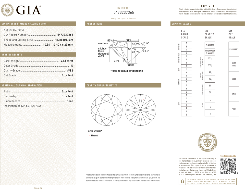 Серьги - пусеты Yanush Gioielli выполненные из белого золота 750 пробы с бриллиантами. 1 бриллиант классической формы огранки "КР-57" массой 4,01 ct цвет -D, чистота - VVS1, EX EX EX. 1 бриллиант классической формы огранки "КР-57" массой 4,13 ct цвет -D, чистота - VVS2, EX EX EX. В обрамлении 52 бриллиантов классической формы огранки общей массой 0,53 ct E-F/VVS. Диаметр - 12,9 мм. Вес - 6,12 гр. В комплекте прилагаются оригинальные документы и сертификаты GIA 5486739450 / 5473237365.