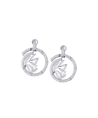 Серьги Carrera y Carrera коллекции "Bambu" выполненные из белого золота 750 пробы с 340 бриллиантами классической формы огранки массой 4,00 ct. Размеры (мм): 43 x 33 x 9. Вес - 25,30 гр.