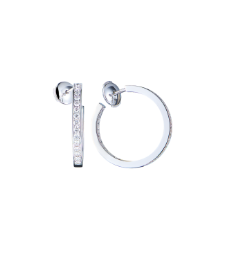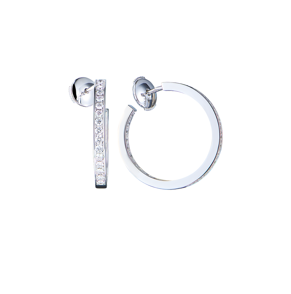 Серьги Cartier выполненные из белого золота 750 пробы с 60 бриллиантами классической формы огранки общей массой 1,30 ct. Диаметр - 24 мм. Общий вес - 9,10 гр.