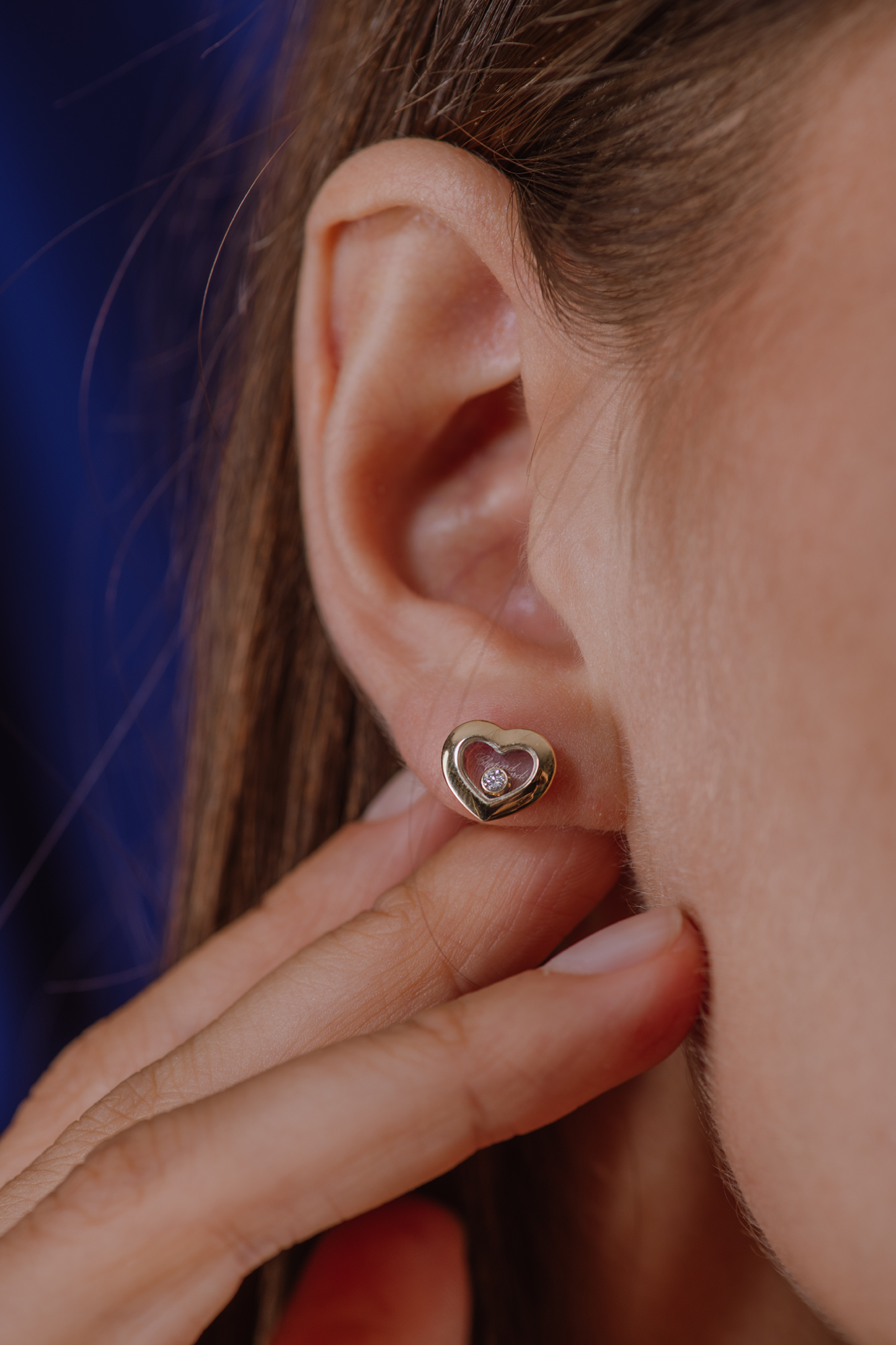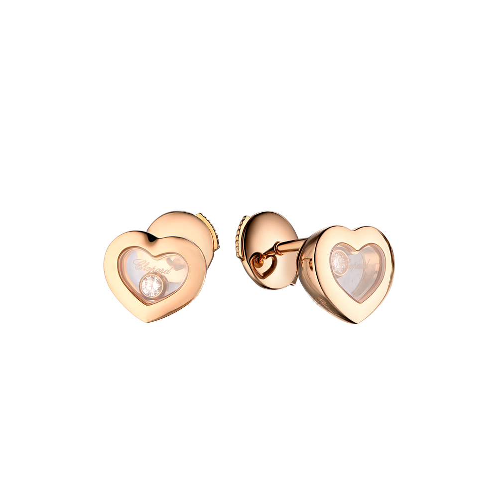 Серьги Chopard коллекции "Happy Icons Heart" выполненное из розового золота 750 пробы с двумя плавающими бриллиантами классической формы огранки общей массой 0,10 ct. Размер 10 х 8,5 мм. Вес - 5,00 гр.