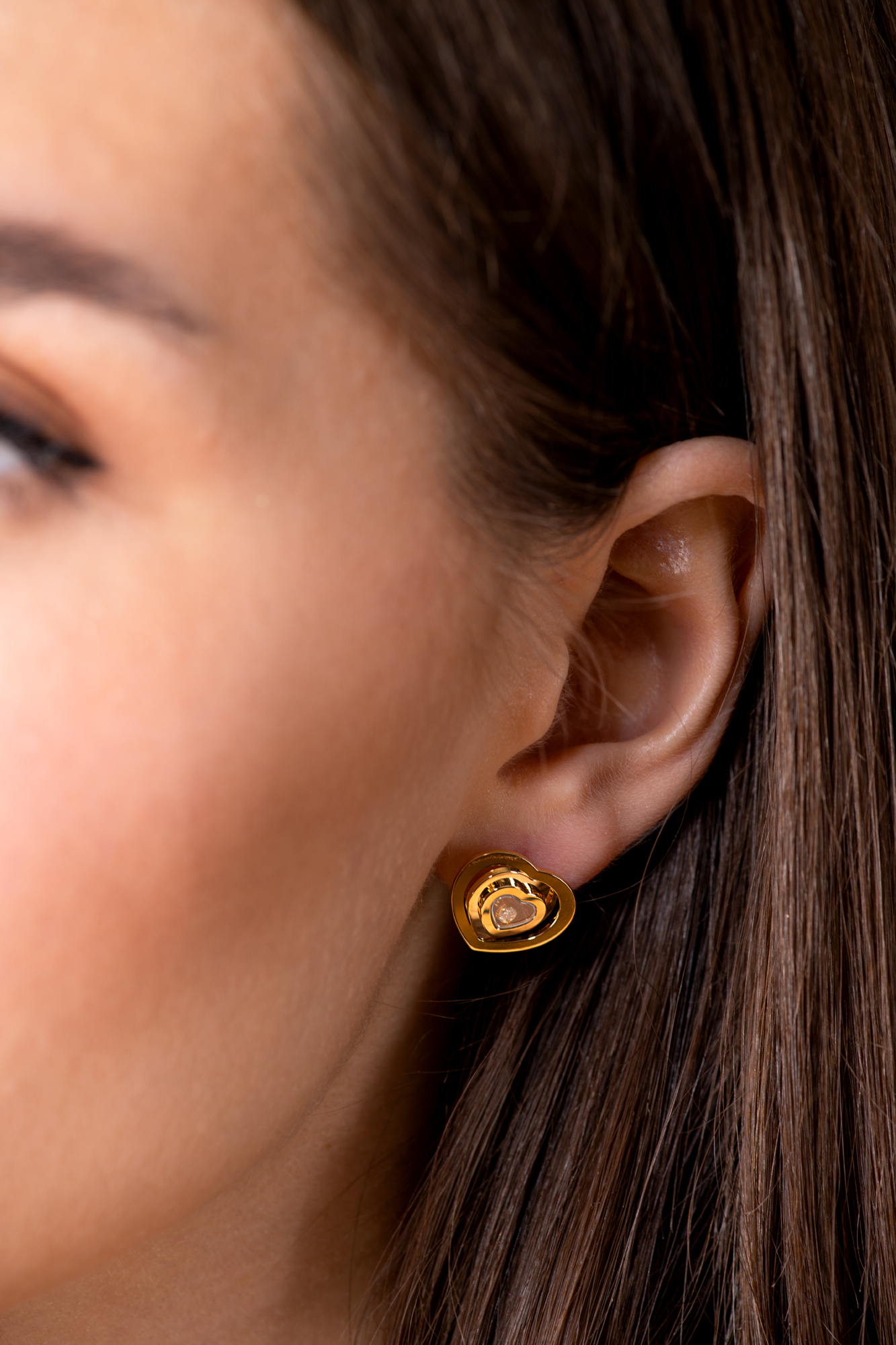 Серьги Chopard коллекции "Happy Spirit" выполненные из желтого золота 750 пробы с 2 плавающими бриллиантами общей массой 0,10 ct. Размер 15 х 13,5 мм. Вес - 7,44 гр.
