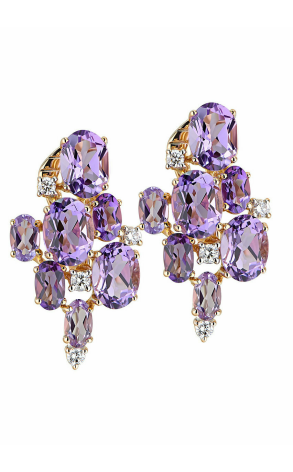 Серьги Damiani коллекции "Cortex" выполненные из розового золота 750 пробы с 14 аметистами 6,2 ct, а также 8 бриллиантами 0,22 ct H/VVS1. Вес изделия - 7,83 гр.