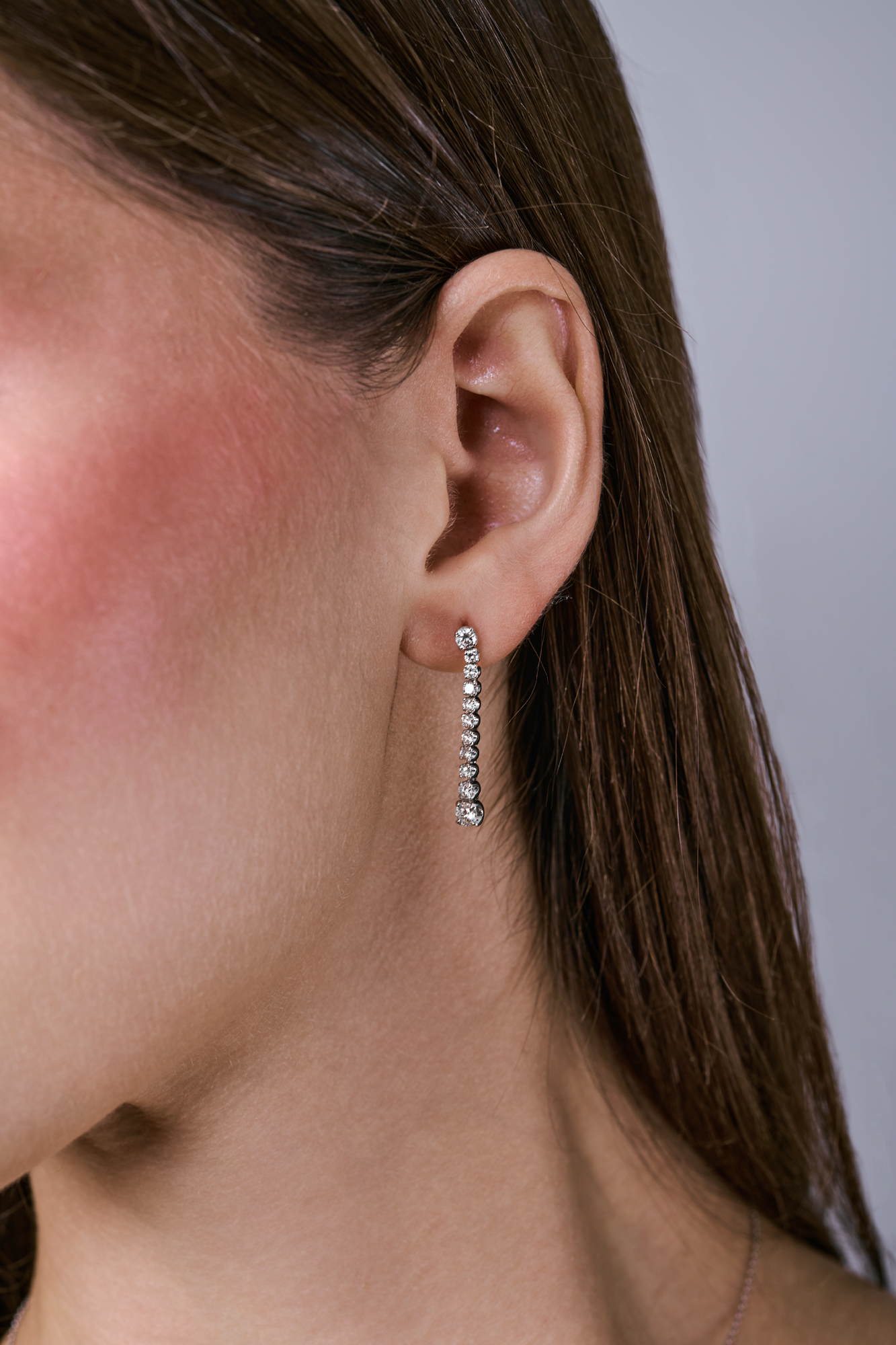 Серьги H. Stern, выполненные из белого золота 750 пробы с бриллиантами. 11 бриллиантов классической формы огранки "КР-57" общей массой 1,20 ct. Цвет F-H. Чистота - VS. Размер 30 мм. Общий вес - 4,51 гр.