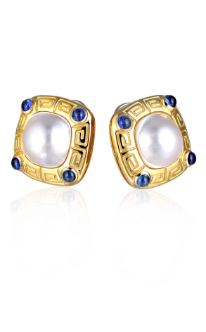Серьги от пуэрториканцкого дизайнера MIMA Jewerly, выполненные из желтого золота 750 пробы с жемчужинами "Мабэ" диаметром 13,8 мм. Вес - 21.52 гр.