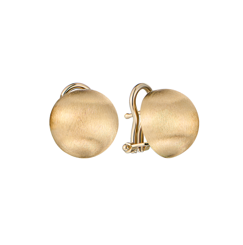 Серьги выполненные из желтого сатинового золота 585 пробы. Диаметр 13,8 мм. Вес 5,20 гр.