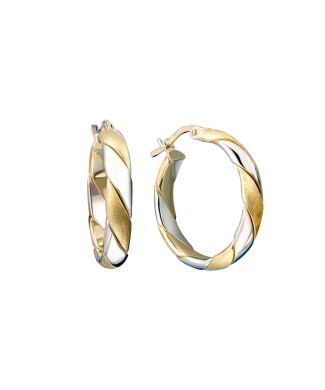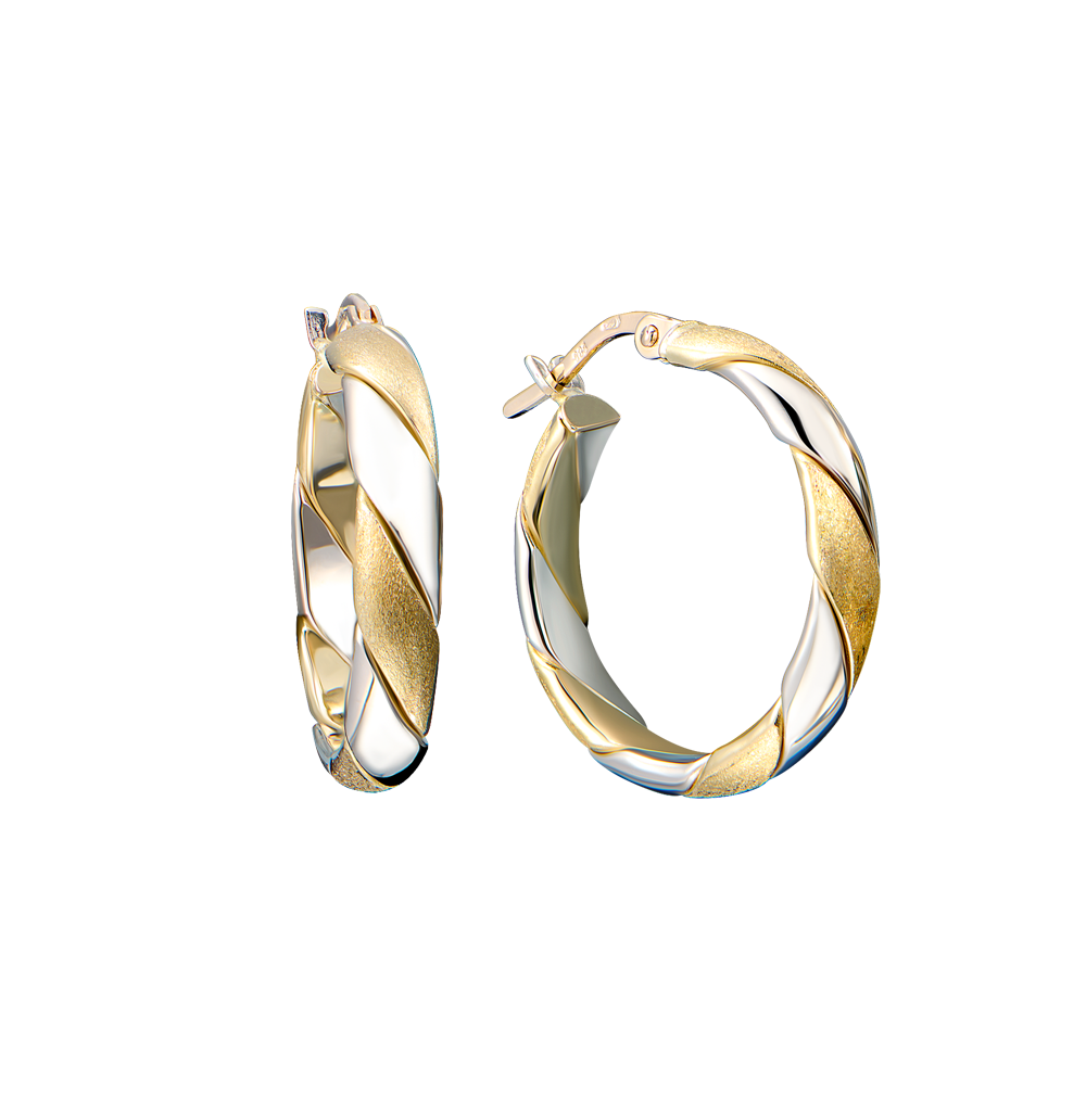 Серьги выполненные из двух видов золота белого и желтого 585 пробы. Диаметр - 22 мм. Вес - 3,41 гр.