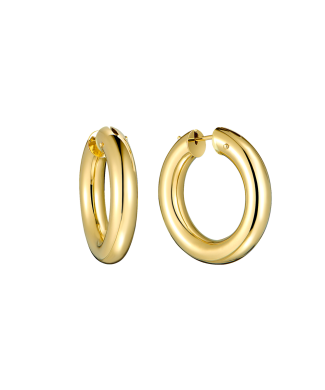 Серьги - конго выполненные из желтого золота 750 пробы. Диаметр - 32 мм. Вес - 8,96 гр.