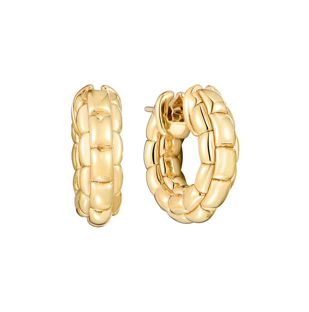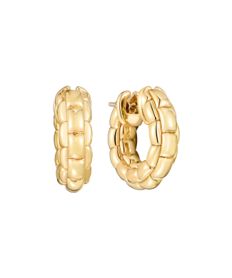 Серьги, выполненные из желтого золота 750 пробы, плетение сережек выполнено в стиле цепочки. Диаметр сережек - 22 мм. Вес - 9,13 гр.