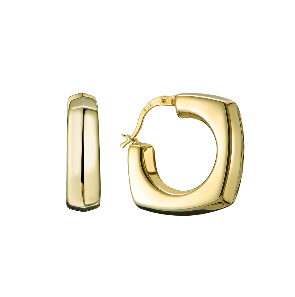 Квадратные серьги-кольца выполненные из желтого золота 585 пробы .Размер сережек 24 х 25 мм. Вес - 6,85 гр.