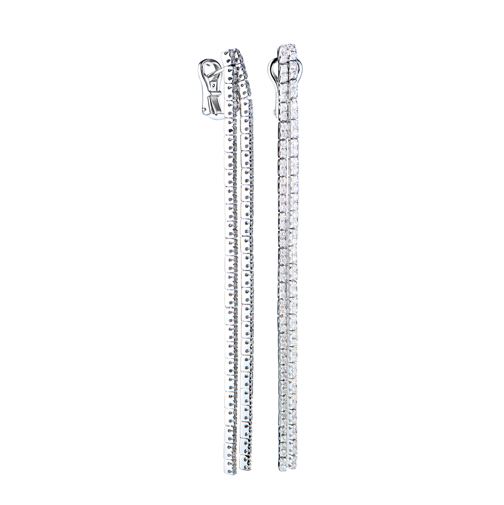 Серьги Pasquale Bruni выполненные из белого золота 750 пробы с 200 бриллиантами классической формы огранки общей массой 2,00 ct. Цвет 3 (G-H). Чистота 4 (VS1-VS2). Длина сережек 9,0 см. Вес - 15,75 гр. В комплекте прилагается экспертное заключение Геммологического центра МГУ.