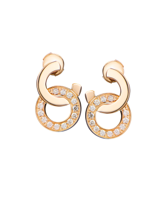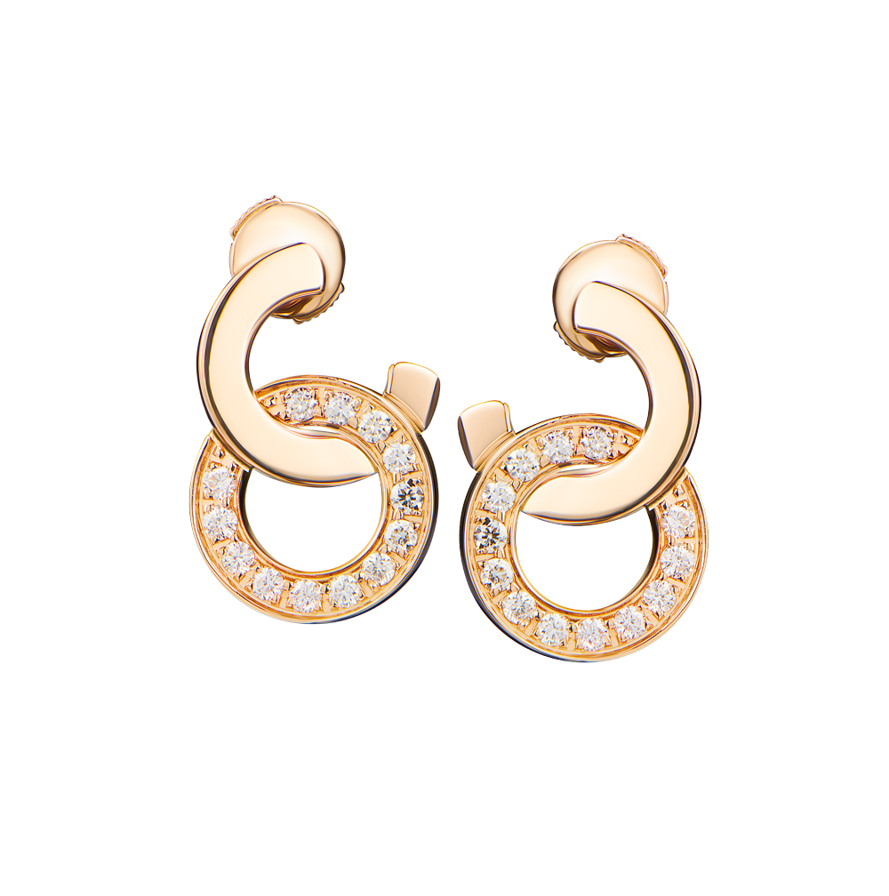 Серьги Piaget коллекции "Possession" выполненное из розового золота 750 пробы с 26 бриллиантами классической формы огранки общей массой 0,5 ct. Размер - 12,5 х 19 мм. Вес - 6,97 гр.