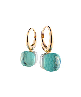 Серьги Pomellato коллекции "Nudo" выполнены из розового золота 750 пробы с двумя небесно-голубыми топазами общей массой 12,2 ct. Размер 20 х 8 мм. Вес - 7,23 гр.