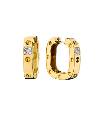 Серьги Roberto Coin коллекции "Pois Moi" выполненные из желтого золота 750 пробы с 10 бриллиантами классической формы огранки массой 0,16 ct., а также 2 рубинами 0,40 ct. Размер 20 х 21 х 4,7 мм. Вес - 12,39 гр.