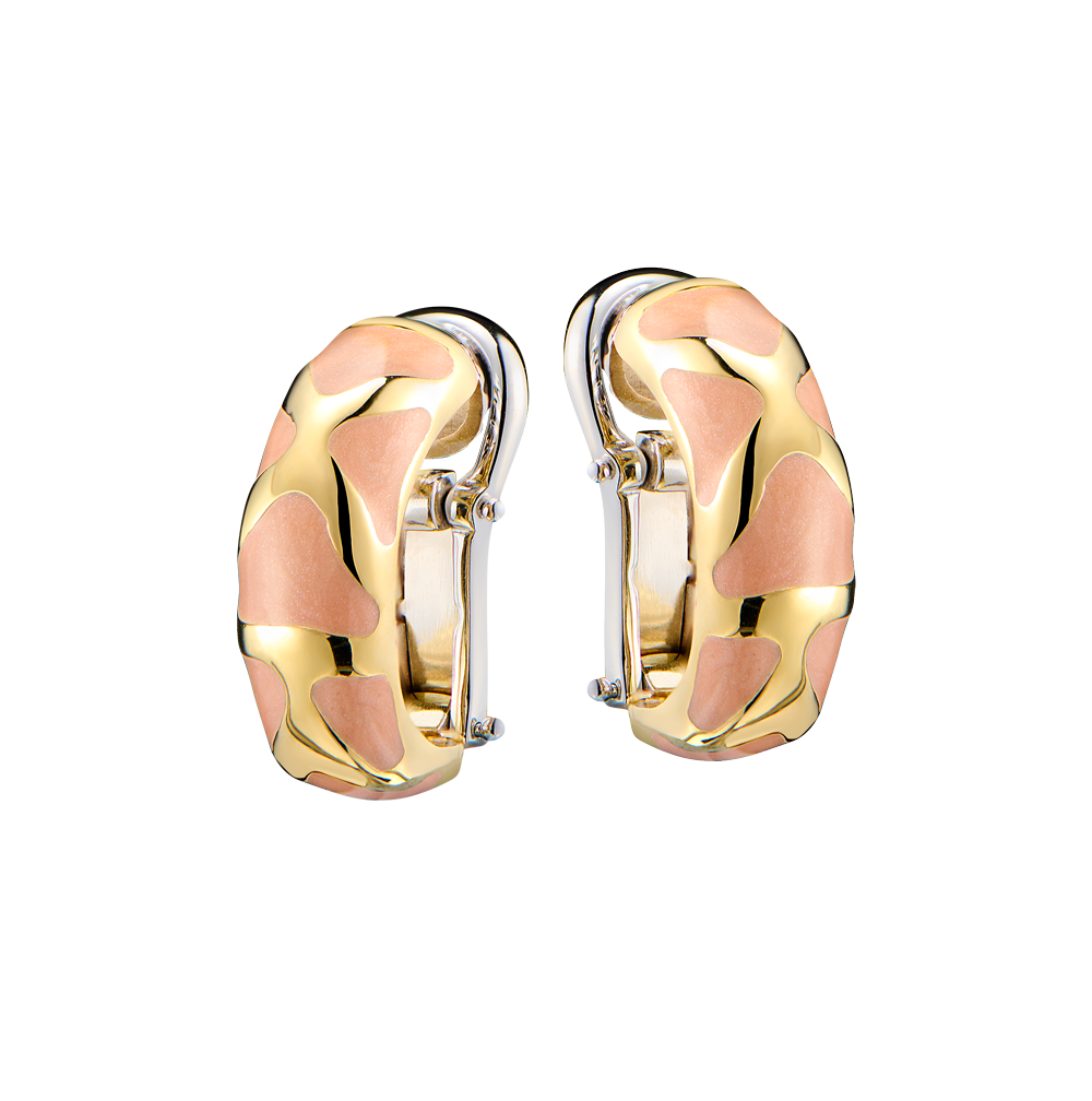 Cерьги Roberto Coin выполненные из желтого и белого золота с эмалью и рубином 0.01 ct из коллекции Animalier. Размер 20 х 7 мм. Вес - 12,20 гр.