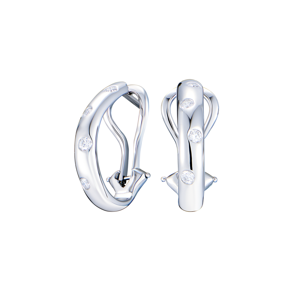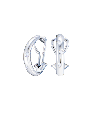 Серьги Tiffany & Co коллекции "Etoile" выполненные из платины 950 пробы, шириной 3,7 мм, с 8 бриллиантами классической формы огранки массой 0,24 ct. Вес - 8,48 гр.